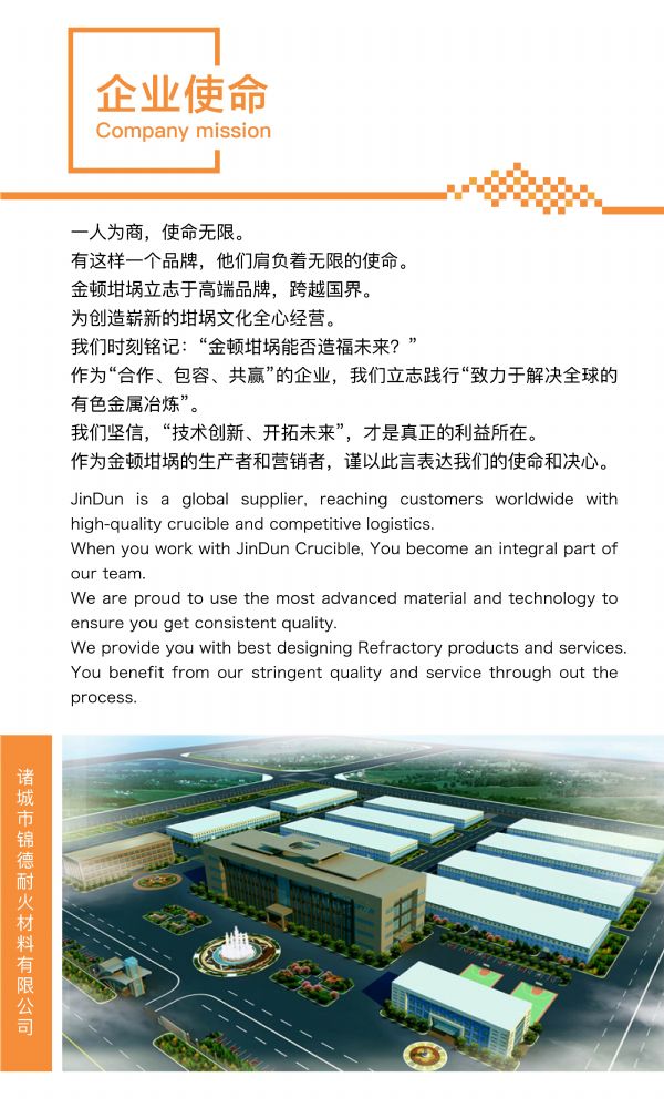 諸城錦德致力于高品質石墨坩堝的研發和生產。不在乎企業做多大,市場占有率有多高,在于持續不斷提升坩堝產品質量,公司旗下的金頓牌碳化硅石墨坩堝、碳氮高端復合坩堝受到